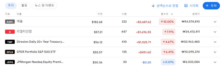 24년 들어서 꾸준한 하락세를 보여주고 있다. 아직 애플에 투자한 기간이 긴것은 아니지만, 경험상 봤을때 결국 하락세일때 1주라도 더 늘려두면 결과적으로 좋은 상승세를 한번에 맞는 경우가 많았기에 역시 가장 중요한 것은 내가 가져가는 지분이라고 생각하며 열심히 좋은 기업의 수량을 늘려가보려고 한다!
