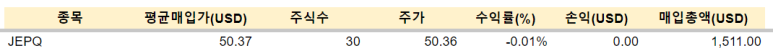이제 어느덧 SPLG도 천만원대로 들어서서 힘이 붙어가고 있는 느낌이다. 당분간은 JEPQ 도 볼륨 열심히 키워가야겠음.