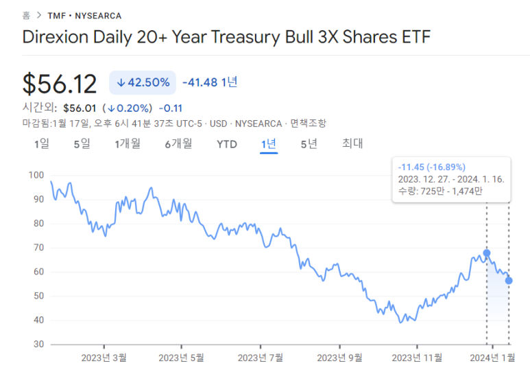 역시 3배 레버리지는 무섭긴 하다 ㄷㄷ 23년 11월부터 12월까지 무려 70%에 가까운 상승세를 보이며 가즈아를 외치기 무섭게..