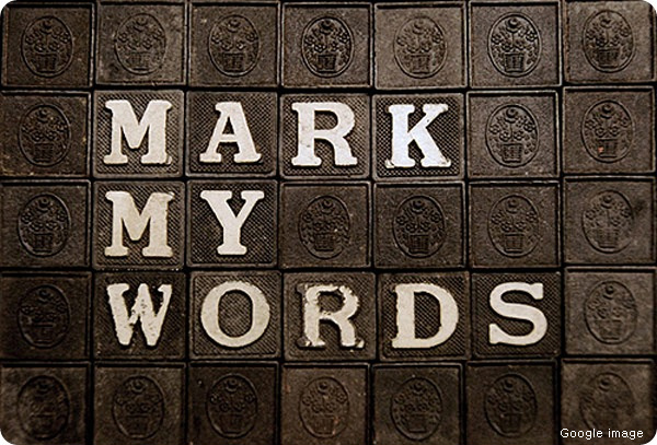 왜 하필 mark 라는 단어를 사용하는지는 잘 모르겠습니다. Mark의 뜻이 ‘표시하다’, ‘방어하다’라는 뜻 이외에 ‘주의해서 듣다’라는 의미도 있다고 하네요. 이런 의미를 유추해서 생각하면 Mark my words. 가 왜 ‘내말 명심해’가 되는지 좀 이해가 되기는 합니다만..