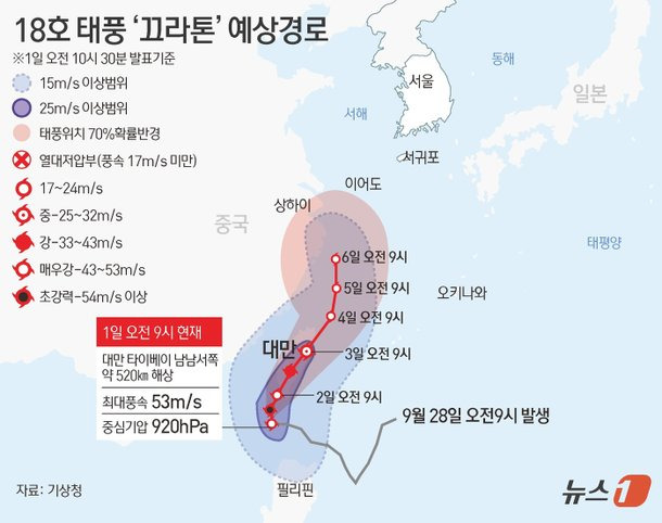태풍 끄라톤은 매우 강한 세력을 유지하고 있으며, 그로 인해 영향을 받을 지역도 상당히 넓습니다. 이번 태풍은 타이완, 필리핀, 중국 동부, 그리고 한국 남부 지역에 영향을 미칠 것으로 예상되고 있습니다. 특히 부산과 경남 지역은 태풍의 직접적인 영향을 받을 가능성이 높으며, 이에 따라 강한 바람과 함께 많은 양의 비가 내릴 것으로 보입니다.