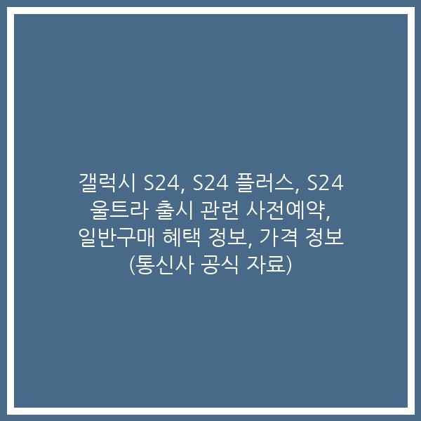 갤럭시 S24, S24 플러스, S24 울트라 출시 관련 사전예약, 일반구매 혜택 정보, 가격 정보
