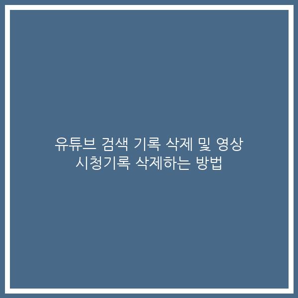유튜브 검색 기록 삭제 및 영상 시청기록 삭제하는 방법