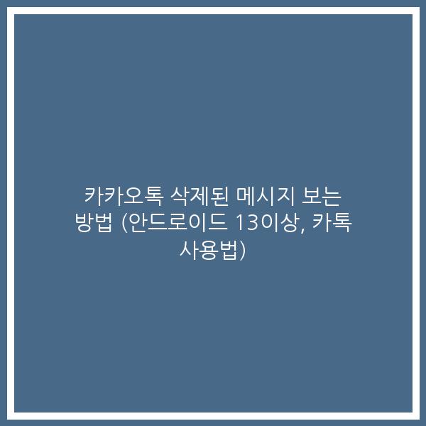 카카오톡 삭제된 메시지 보는 방법 (안드로이드 13이상, 카톡 사용법)