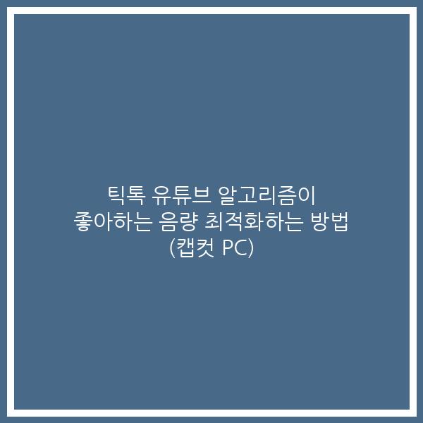 틱톡 유튜브가 좋아하는 음량 최적화 하는 방법에 대해 알아보았습니다.