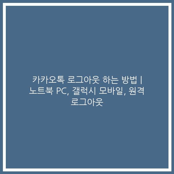 카카오톡 로그아웃 하는 방법 | 노트북 PC, 갤럭시 모바일, 원격 로그아웃