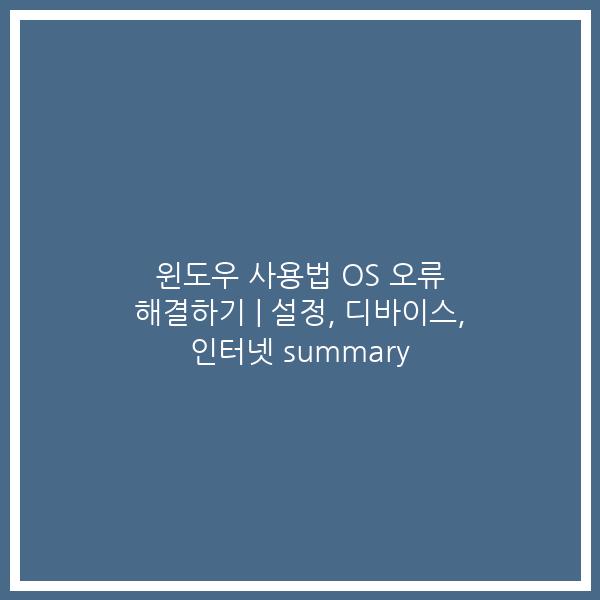 윈도우 OS 오류 해결하기 정리 | 설정, 디바이스, 인터넷