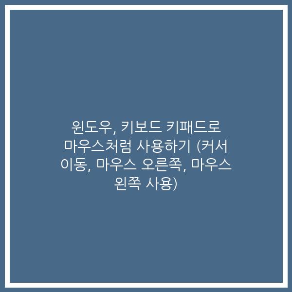 이상으로 윈도우 PC 사용 중 갑자기 마우스가 고장이 나는 경우, 키보드 키패드를 사용해 마우스 대신으로 사용할 수 있는 기능에 대해 알아보았습니다.