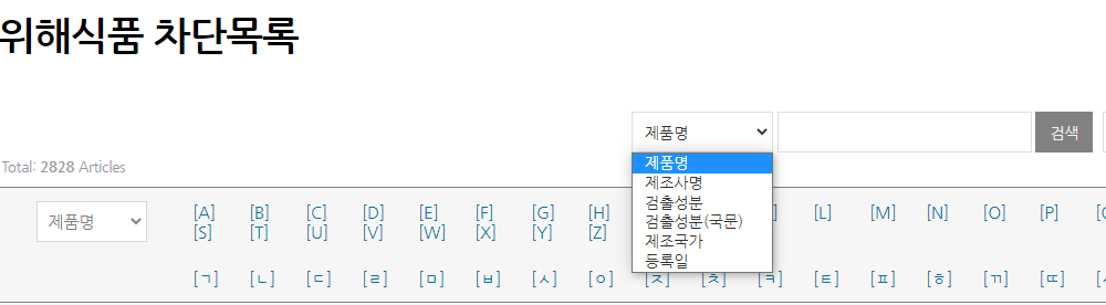 3. Food식품안전나라 iframe, 위해식품 차단 목록 검색하기