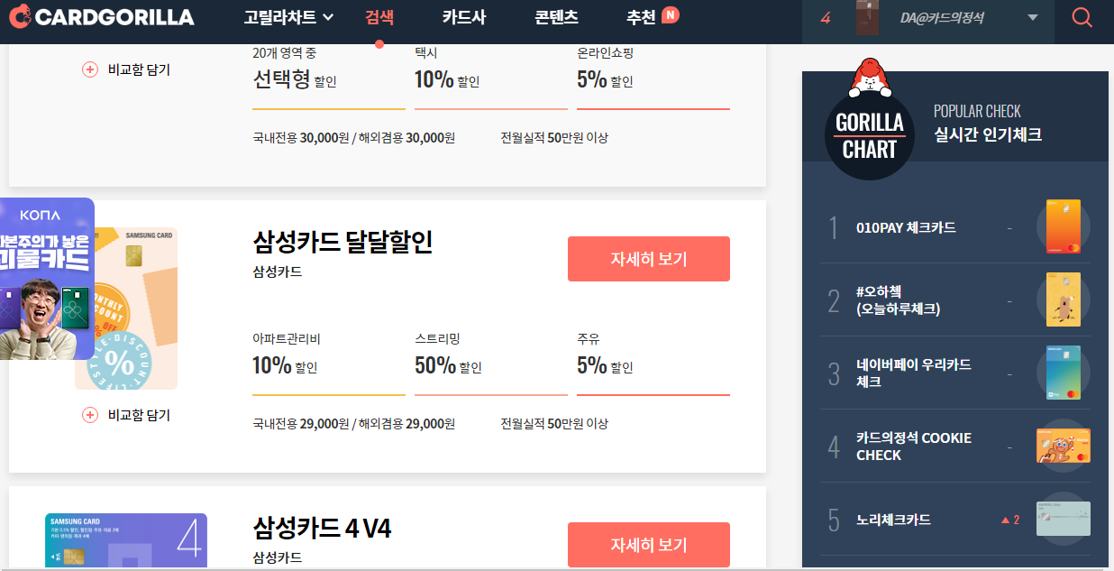 카드고릴라에서 혜택 좋은 신용카드, 체크카드 찾는 법