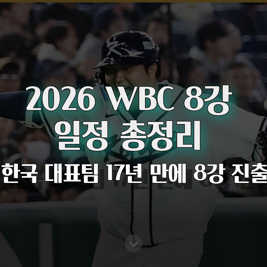 2026 WBC 8강 일정 총정리 한국 야구대표팀 17년 만에 8강 진출 한국 야구대표팀이 드디어 2026 월드베이스볼클래식 8강 무대에 올랐다. 이번 진출은 단순한 조별리그 통과가 아니다. 마지막 경기에서 반드시 큰 점수 차 승리가 필요했던 상황에서 정확히 필요한 결과를 만들어냈고, 그 덕분에 3개 팀이 얽힌 복잡한 타이브레이커까지 통과했다. 최근 WBC에서 답답한 흐름이 길게 이어졌던 한국 야구 입장에서는 분위기를 완전히 바꿔놓는 결과라고 봐도 무리가 없다. 그래서 지금 가장 많이 검색되는 키워드도 자연스럽게 WBC 8강 일정, WBC 8강 중계, 한국 WBC 8강 상대, 대한민국 대표팀 경기시간 쪽으로 몰리고 있다.