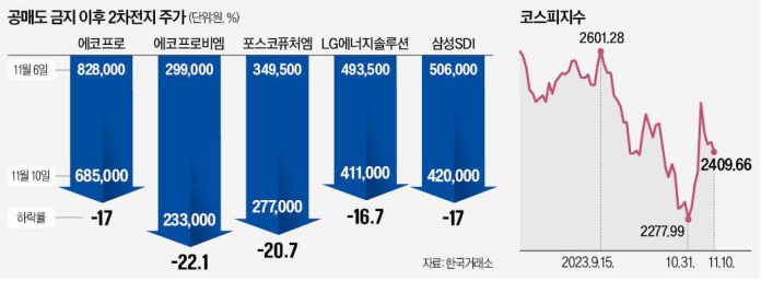 금융당국이 2023년 11월 6일부터 2024년 6월 30일까지 공매도를 전면 금지하겠다고 발표하면서, 공매도 차단 기대감에