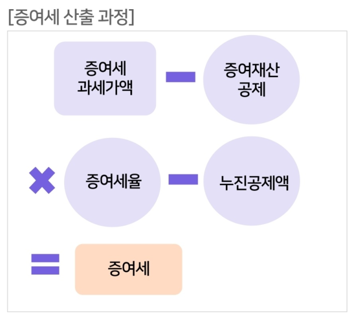 | 과세표준 | ( X 세율) | ( – 누진공제액) |