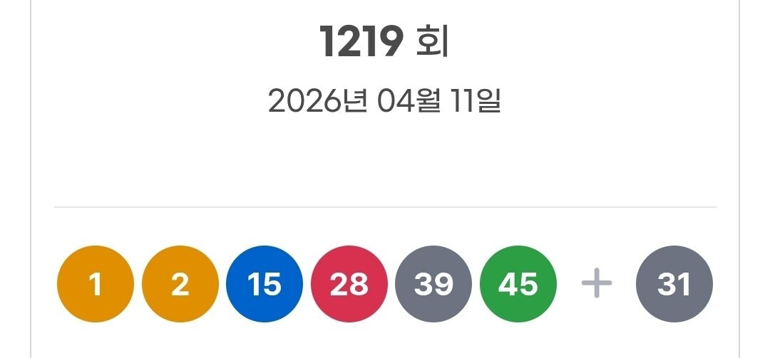 이번 1219회 로또 당첨번호는 1, 2, 15, 28, 39, 45입니다. 보너스 번호는 31로 발표됐습니다. 숫자 구성만 보면 이번 회차는 앞번호와 뒷번호가 비교적 넓게 퍼져 있는 편입니다. 한 자릿수 숫자인 1과 2가 함께 나왔고, 중간대 숫자인 15와 28, 후반대 숫자인 39와 45까지 골고루 분포돼 있어 체감상으로도 꽤 넓은 범위의 조합처럼 느껴집니다.