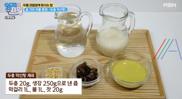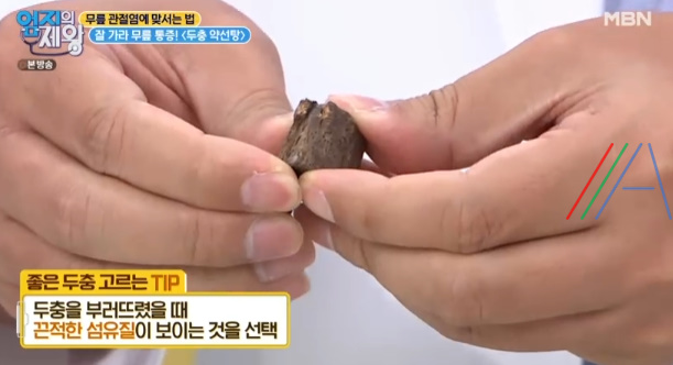 엄지의 제왕> 방송에서는 ‘무릎 관절염에 맞서는 법’ 편이 방영되며, 트로트 가수 숙행과 엄지군단이 무릎 관절염의 원인과 개선 및 극복을 위한 방법들이 소개됩니다. 배한호 한의사는 두충을 이용해서 두충 약선탕 만드는 법을 알려주었어요.