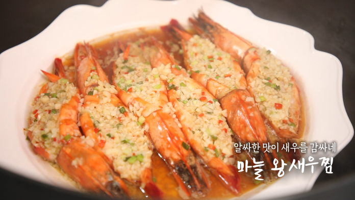 3. 손질된 왕새우 살에 2의 마늘 소스를 얹고 찜통에서 10분간 쪄서 완성한다.