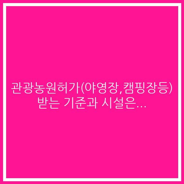오늘은 캠핑허가를 받기 위한 관광농원에 대하여 알아보겠습니다.