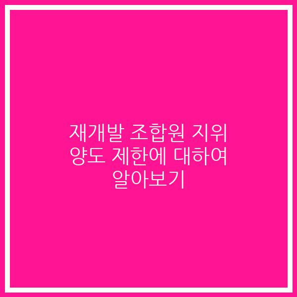 재개발 조합원 지위 양도 제한에 대하여 알아보기