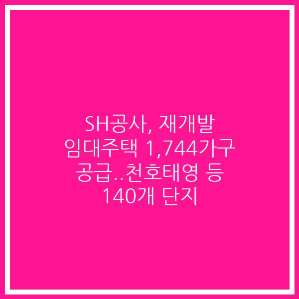 SH공사, 재개발 임대주택 1,744가구 공급..천호태영 등 140개 단지