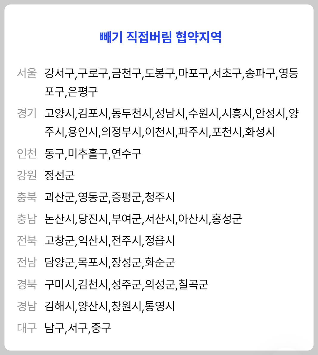 지방에서도 협약 지역에서는 빼기어플이 사용가능합니다.