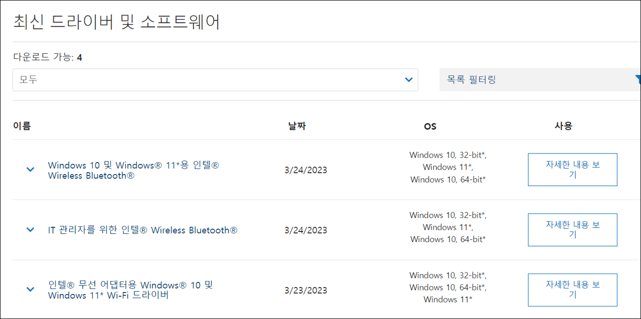 2. 인텔 공식 홈페이지 드라이버 다운로드