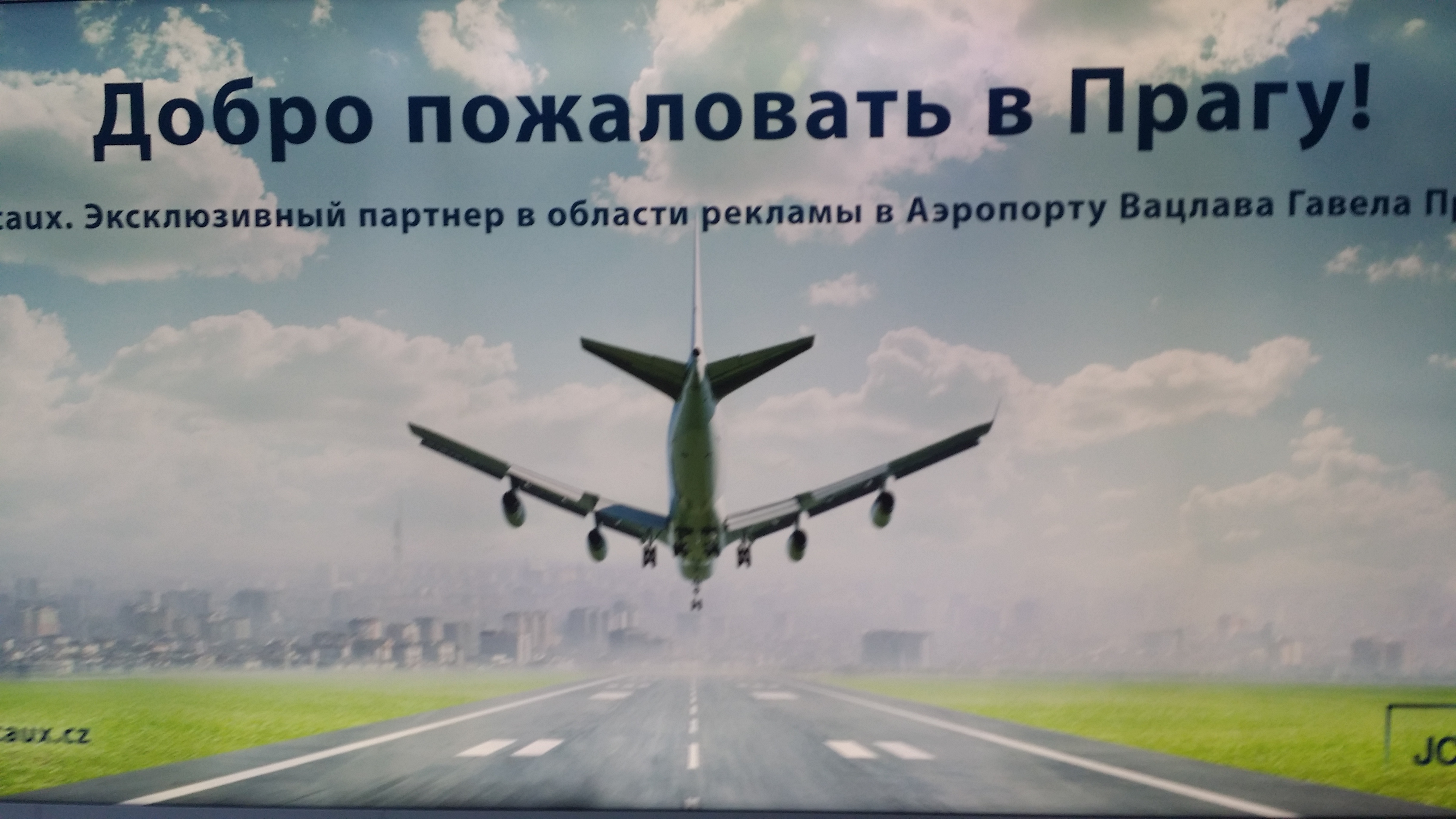 체코 프라하 공항, 환영 광고는 영어 & 러시아어