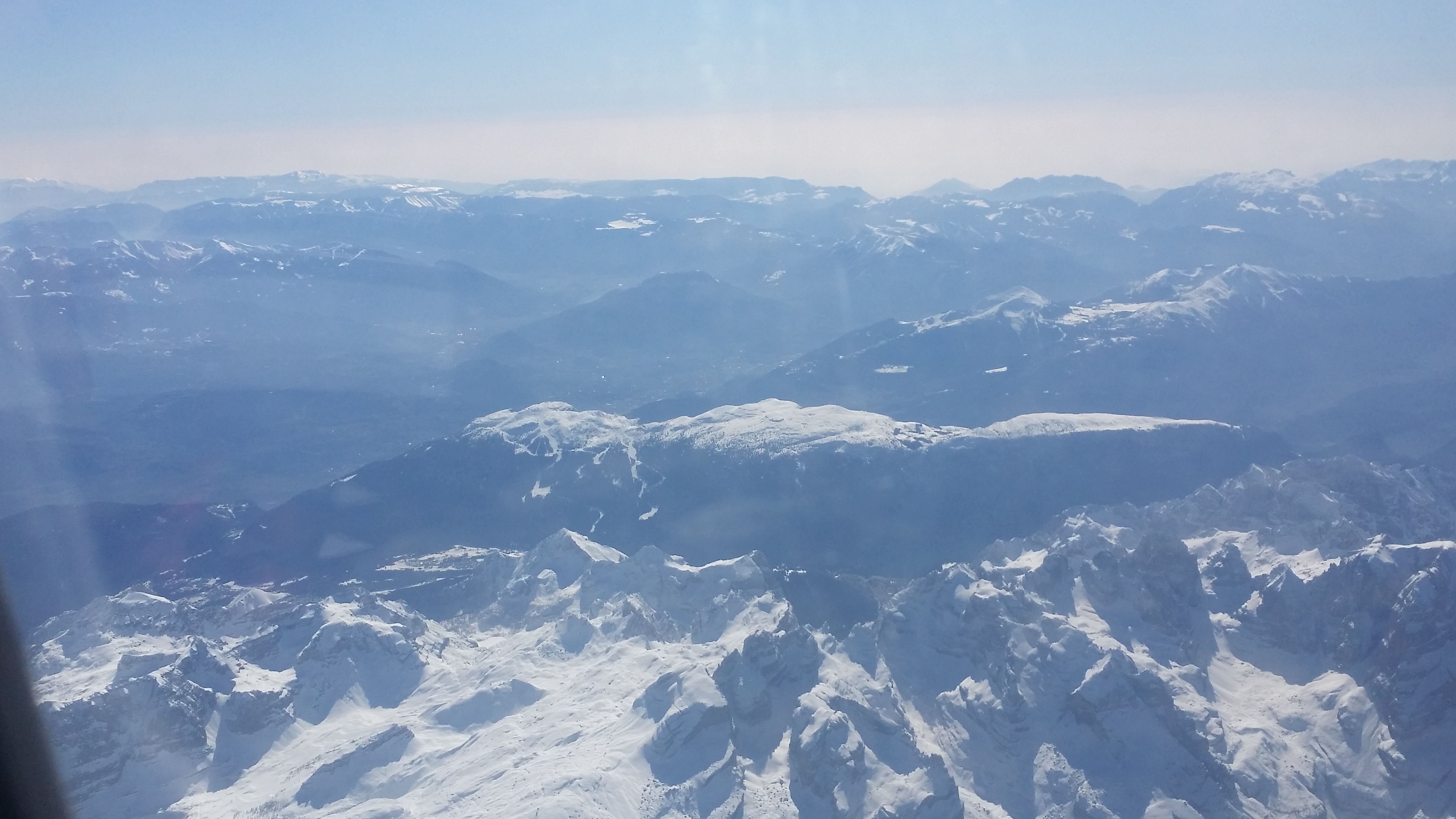 한국 인천공항에서 출발한 체코 프라하 노선은 유럽 알프스를 통과하는데, 비행기 안에서 보는 알프스는 눈으로 가득한 설산이 계속 이어지는 장관을 보게 되네요.