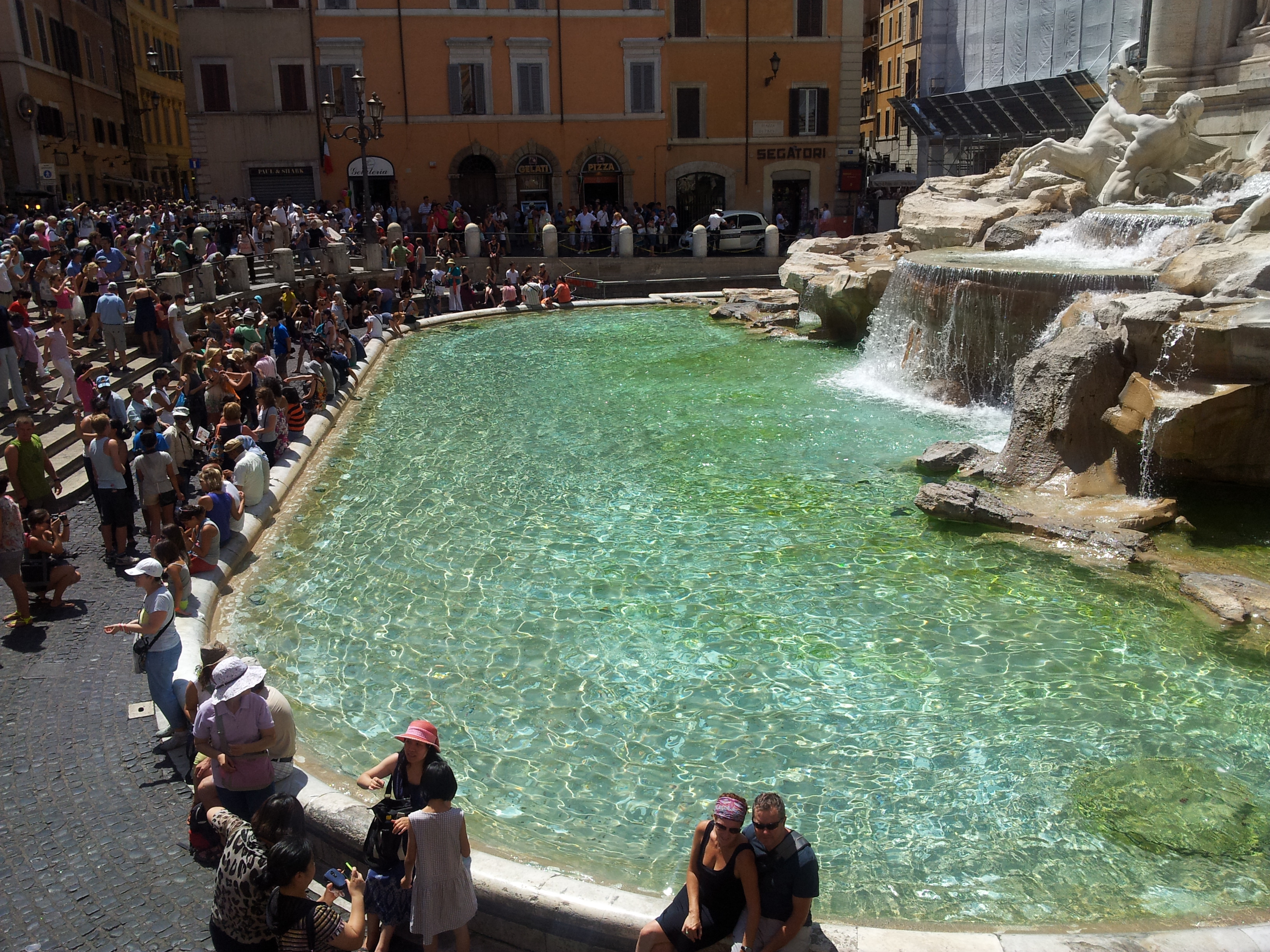 트레비 분수 Trevi Fountain는 분수의 규모도 크지만, 장관은 뒤쪽에 있는 거대한 조각품으로, 사람들이 앉아서 구경하느라 잘 떠나지 않는 곳 입니다.