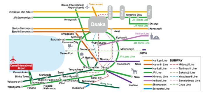 간사이공항-오사카/ 교토/ 고베: 이동루트 (source: www.japan-guide.com/)