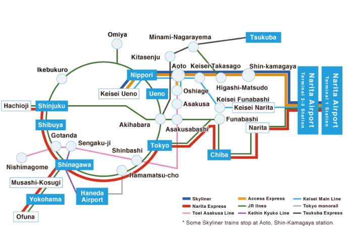 일본 나리타 공항에 도착한 이후, 도쿄 북부, 신주쿠 또는 사이타마 방면으로 가려면, 게이세이 스카이라이너로 이동하는 것이 좋습니다.
