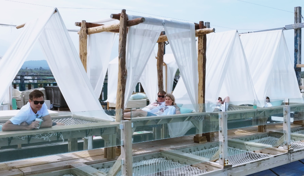 루프탑 해먹에 누워 제도 협재 해수욕장 오션뷰를 바라보며 ‘물멍’ 힐링 타임을 즐긴다.
