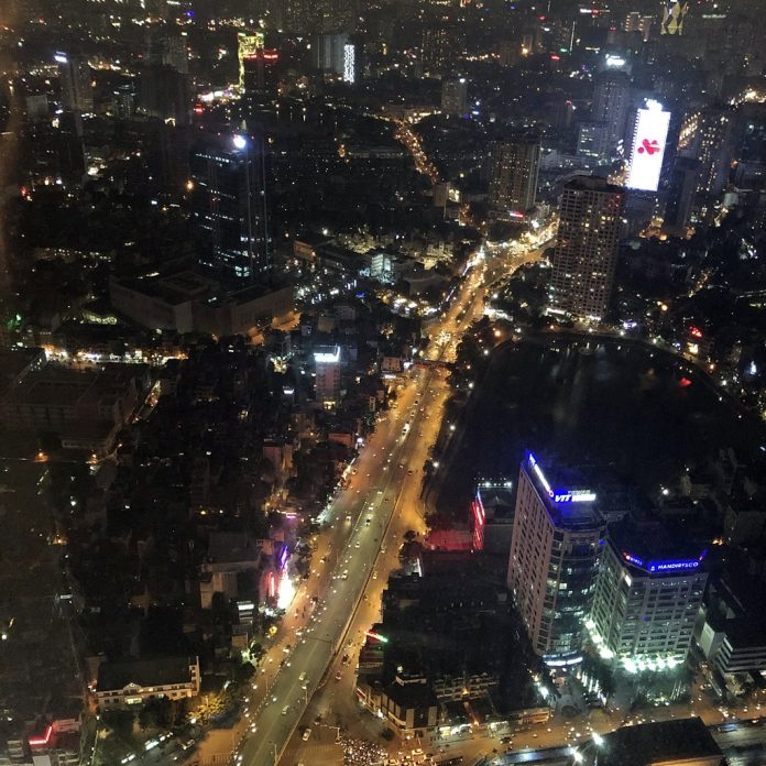 전망대 유리창에 다가서니 하노이의 다채로운 야경이 펼쳐진다. 하지만 다른 도시의 야경에 비해선 그다지 화려하지 않다. 고층건물들도 많지 않고.
