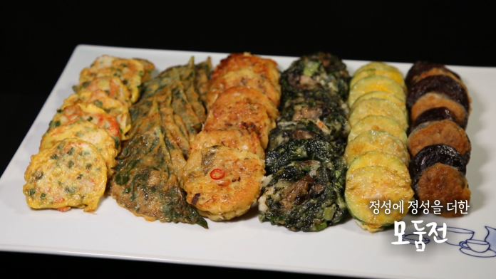 모둠전 – 애호박새우전, 파래굴전, 게맛살전, 깻잎전, 표고버섯전, 녹두전 재료