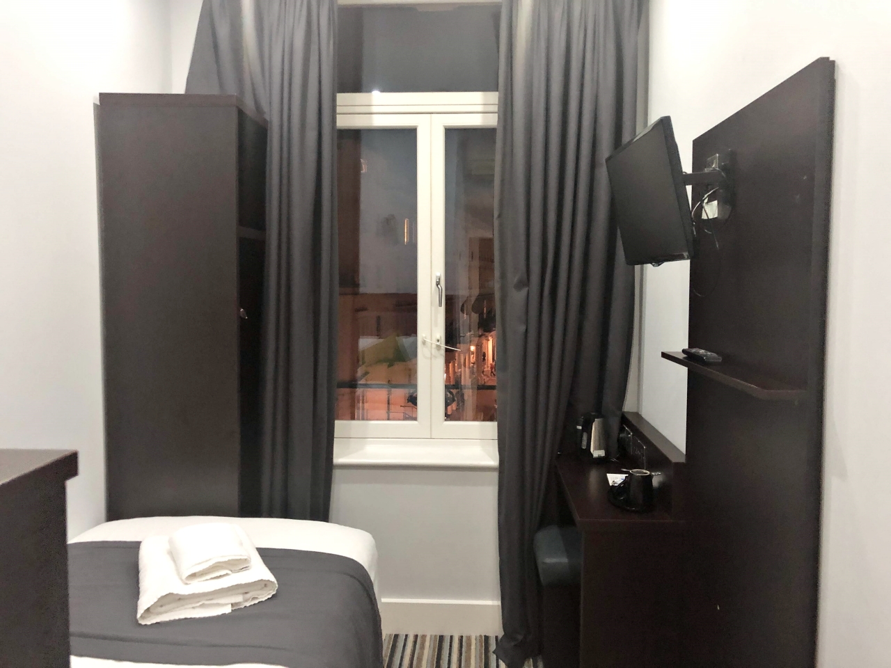 . 일본의 좁은 비즈니스 호텔 같은데 런던의 높은 호텔 가격을 감안하면 그래도 지내는데 문제가 없다. Wi-Fi (무료/전 객실), 일일 청소 서비스, 24시간 프런트 데스크, 여행 가방 보관 등도 가능하다. 커피와 티가 무료로 제공되고 샴푸/바디클렌저 겸용, 핸드워시가 구비되어 있다. 그런데 그외 물품은 전혀 치약/칫솔/샴푸/헤어브러쉬/화장품 등은 반드시 따로 가져 가야 한다.
