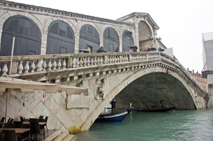베네치아를 관통하는 S자의 대운하에는 3개의 다리가 있는데, 그중 가장 오래되고 아름다운 다리가 리알토 다리이다. 16세기까지 나무 다리였다가, 붕괴와 화제가 몇번이나 겹쳐지면서 16세기말에 현재의 돌다리로 바뀌었다. 다리의 설계안을 일반인에게서 모집했던 당시 미켈란젤로도 일반 공모로 참가했지만 채용 되었던 것은 안토니오 다 폰테의 작품. 그 결과 하얗게 빛나는 대리석 다리로 변신하였다.