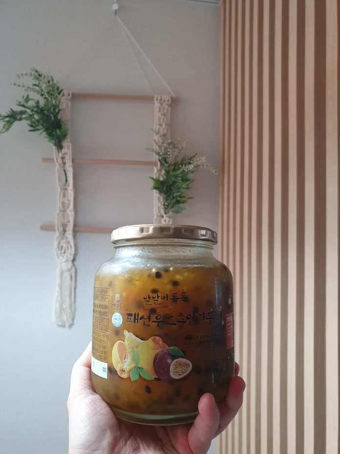 그래서 뭘 먹을까 고민하다가 과일청으로 에이드를 만들어 먹기로 하고 고른 제품이 패션후르츠한라봉청입니다.