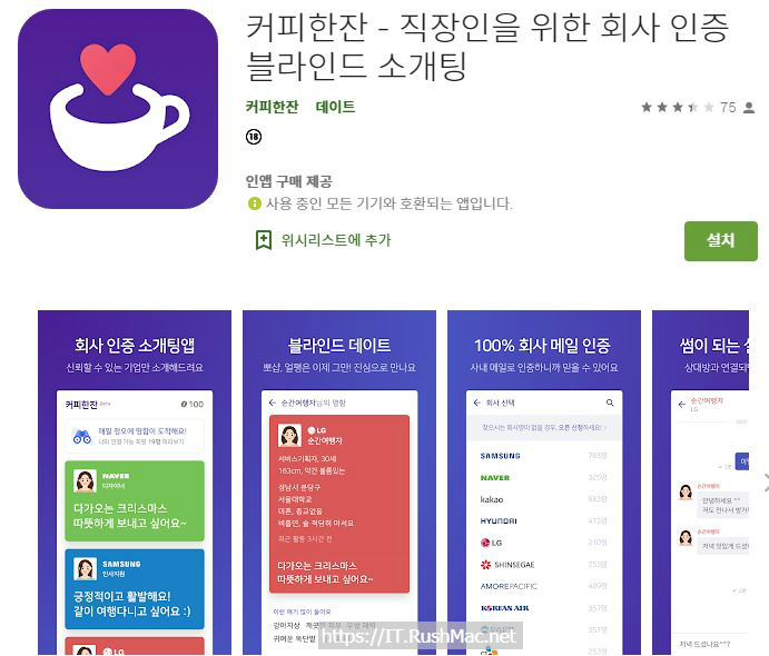 커피한잔 – 직장인을 위한 회사 인증 블라인드 소개팅 소개