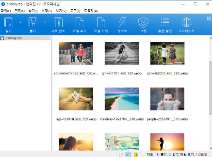 압축파일 내부의 이미지 파일을 압축 해제 없이 미리 볼 수 있습니다.