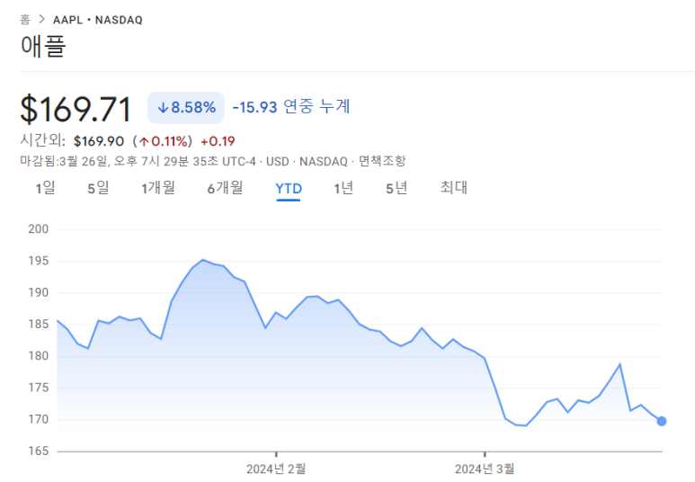 24년에 9% 가까이 하락중인 애플이지만..