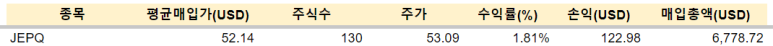 리얼티인컴은 다시 모아가도 괜찮다는 생각이 들어서 이번에도 리얼티인컴 50주를 덜어내고 애플, SPLG, 젭큐(JEPQ)를 줍줍해보았다.