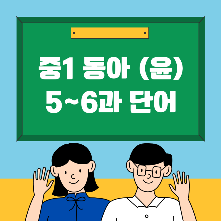 중학교 1학년 영어 교과서 동아 윤정미 5과와 6과에 나오는 주요 단어 학습 자료를 공유합니다. 영어 공부의 기초는 당연코 단어 공부입니다. 영어에 자신감을 갖게 해주는 가장 확실한 방법이기도 합니다. 원어민이 읽어주는 영상과 시험지도 활용해 보시기 바랍니다. 중1 동아 윤정미 5~6과 단어 학습 단어 듣고 따라하기 5과와 6과에 나오는 단어를 원어민이 3회씩...