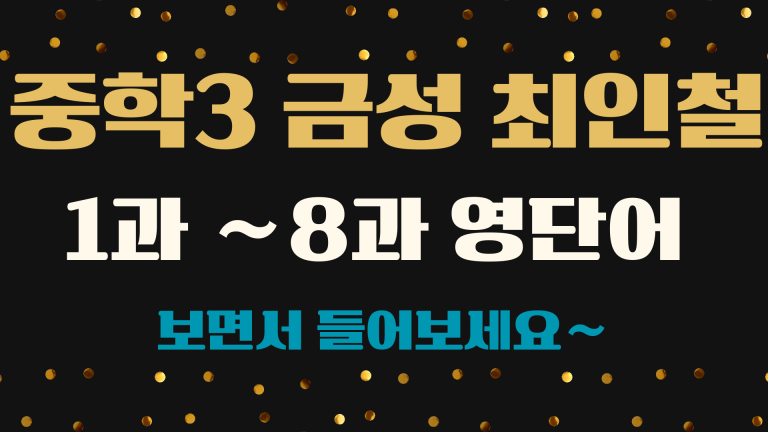 중학교 영어 교과서 금성출판사(저자 최인철) 1과에서 8과까지 주요 단어 학습 자료를 공유합니다. 곧 2학기 중간고사가 다가옵니다. 미리 단어부터 확실히 공부해 보시면 좋겠습니다. 첨부한 단어장도 활용해 보시길 바랍니다. 중3 금성 최인철 1과에서 8과까지 영단어 총정리 단어 듣고 따라 하기 원어민이 들려주는 소리를 잘 듣고 함께 따라 읽어 보면 좋습니다. 들을 때에는...