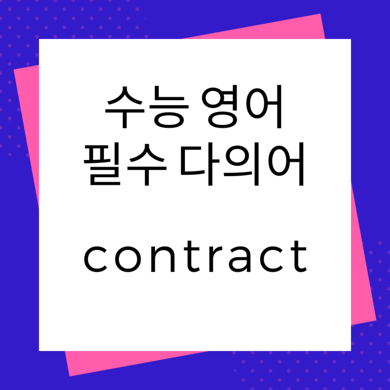 수능 영어 독해 지문에 자주 등장하는 다의어 contract의 다양한 의미들을 예문과 함께 살펴보도록 하겠습니다. 단어 실력이 어느 정도 뒷받침 되어야 제한된 시간에 빠르게 독해 지문의 중심 내용을 이해하고 문제를 풀 수 있습니다. 수능 영어 독해 필수 다의어 contract 의미 알아보기 contract 계약서 contract가 가장 많이 사용되는 의미는 ‘계약서’입니다. contract은 주로...