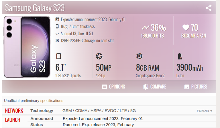 [전략] 삼성 갤럭시: Galaxy S23 스펙 2023년 2월1일 삼성 갤럭시 S23 언팩 예정인데, 사전에 유출된 스펙 대비 실제 스펙이 얼마나 차이가 있을까요? 기술적인 스펙을 가장 상세하게 정리한 GSMArena.com 사이트에 사전공개된 스펙을 기준으로 다시 실제 스펙발표를 확인해서 업로드할 예정입니다. Galaxy S23, S22 대비 주요 업그레이드 포인트 우선적으로, 미디어에서 공통적인 Galaxy S22...