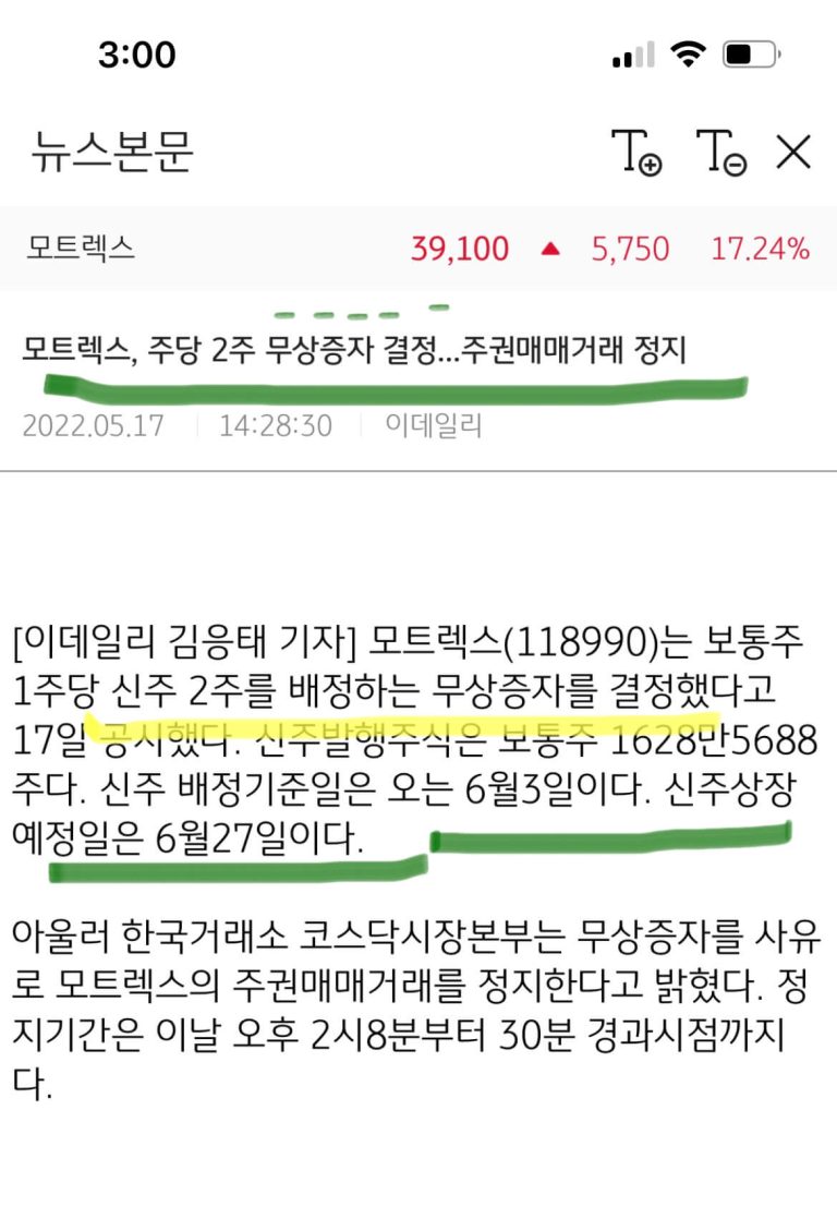모트렉스 무상증자 결정, 1주당 2주 배정 주권매매거래정지, 주가 상승