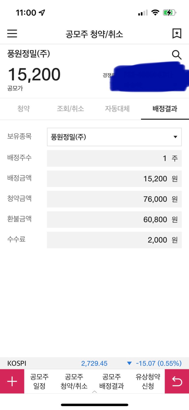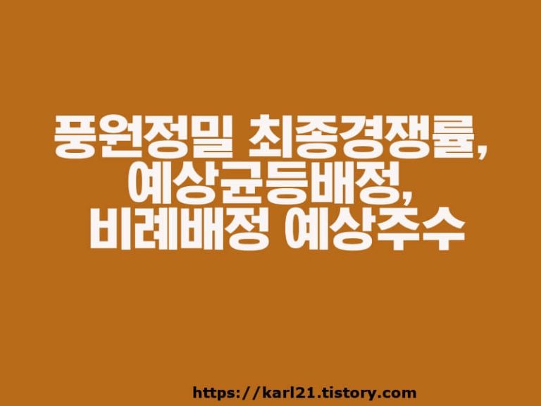 풍원정밀 최종경쟁률 풍원정밀 공모 청약 2일차, 풍원정밀의 청약일정이 모두 종료되었습니다. 풍원정밀 청약경쟁률은 오후 3시 기분으로 대신증권 1971.20:1 이란 경쟁률을 기록했습니다만(카카오페이 자료 참고), 최종경쟁률은 4471.96대 1 이라고 합니다. 유튜브 주식애소리에서는 비례예상경쟁률을 3,500:1로 예상하기도 했는데요, 그것보다 더 높은 경쟁률이 나왔습니다. 그렇다면 과연 몇 주나 받을 수 있을까요? 경쟁률이 너무 치열해서 어쩌나 했는데요....