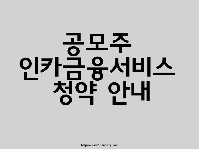 인카금융서비스 안녕하세요, 카알입니다. 2월입니다. 2월에도 공모주의 랠리는 계속됩니다. 2월 첫째주부터 있을 공모주 첫번째, 인카금융서비스 청약에 대해서 한번 알아보도록 하겠습니다. 인카금융서비스 청약의 모든 것 인카금융서비스 어떤 기업? 보험 및 연금관련 서비스업 공모가 18,000원 (20주 신청시 180,000원 필요/증거금 50%) *이번에는 특이하게 최소청약주수가 10주가 아니라 20주임을 수정공지합니다. 기관경쟁률 13.69:1 의무보유확약 4.19% 주관사 한국투자증권...