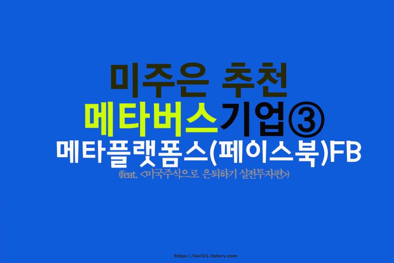 미주은추천기업 메타플랫폼스FB 오늘은 한동안 쉬었던 미주은 추천 기업시리즈 로 다시 돌아가 볼까 합니다. 미주은 추천 메타버스기업 세번째 기업, 메타플랫폼스(페이스북)FB 에 대해서, 이 기업의 투자매력, 투자리스크, 그리고 장래성까지 같이 살펴보고자 합니다. INDEX 1. 페이스북을 아시나요? 2. 페이스북이 메타플랫폼즈로 다시 태어나다 3. 메타플랫폼의 투자매력 4. 메타플랫폼스의 투자리스크 5. 메타플랫폼스의 미래 1. 페이스북을...