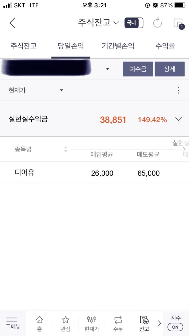 오늘 디어유가 드뎌 코스닥 시장에 상장하게 되었습니다. 11월 10일입니다. IPO공모가가 29,000원 이었는데요, 시작부터가 굉장히 대단했습니다. 순식간에 따상을 돌파하고요, 따상상을 향해 가느냐 마느냐 한번 67000원대를 고점을 찍고 다시 내려왔습니다. 저도 어찌할까 고민을 하다가 오전에 빨리 매도를 해야 할 것 같아서 시장가에 팔았는데요, 65,000원 을 찍었습니다. 내 눈에 시장가는 65,300원이었는데, 매도가는 65,000원에...