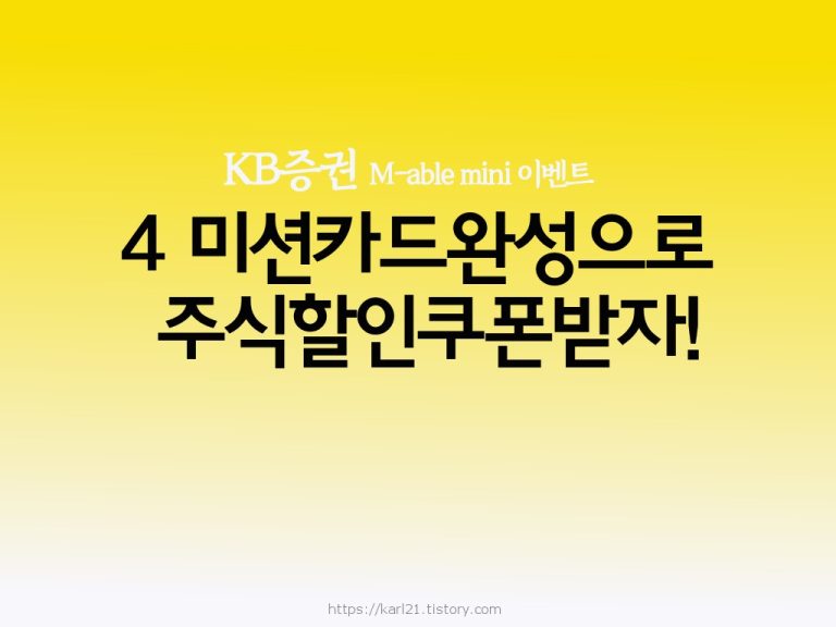 KB증권 마블 미니M-able mini 이벤트/4개의 미션카드완성으로 주식할인쿠폰 받기